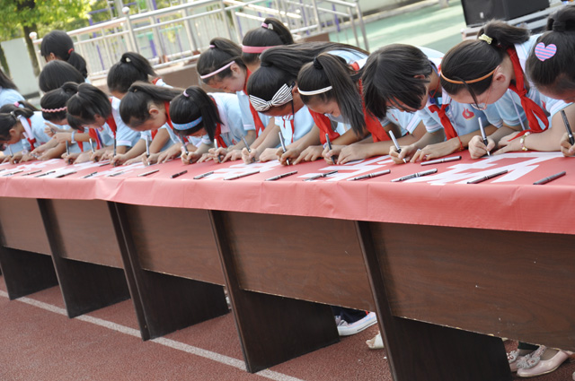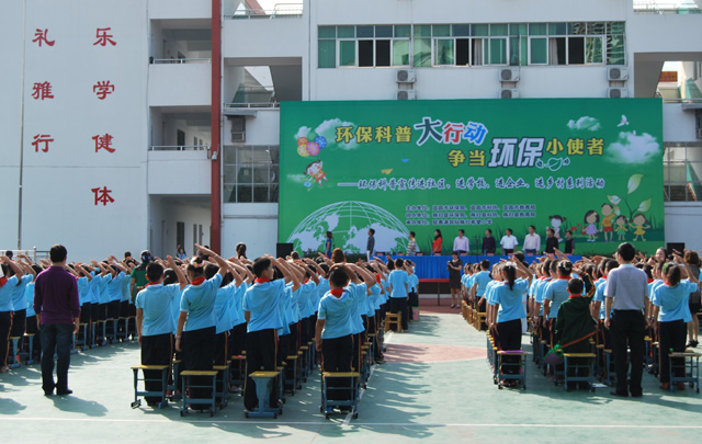 活动现场,该校“绿色环保少年”代表进行了环保主题演讲,少先队员代表发出倡议“从我做起,争当环保小使者”并带领全校少先队员集体宣誓,环保少年先进个人在“从我做起,争当环保小使者”横幅上签名,同学们开展了“认养植物做伙伴”活动,将亲手制作的植物认养牌挂在认养的植物上定期施肥、看护,并观看了球幕影院放映的生态环保影片《恐龙的灭绝》。