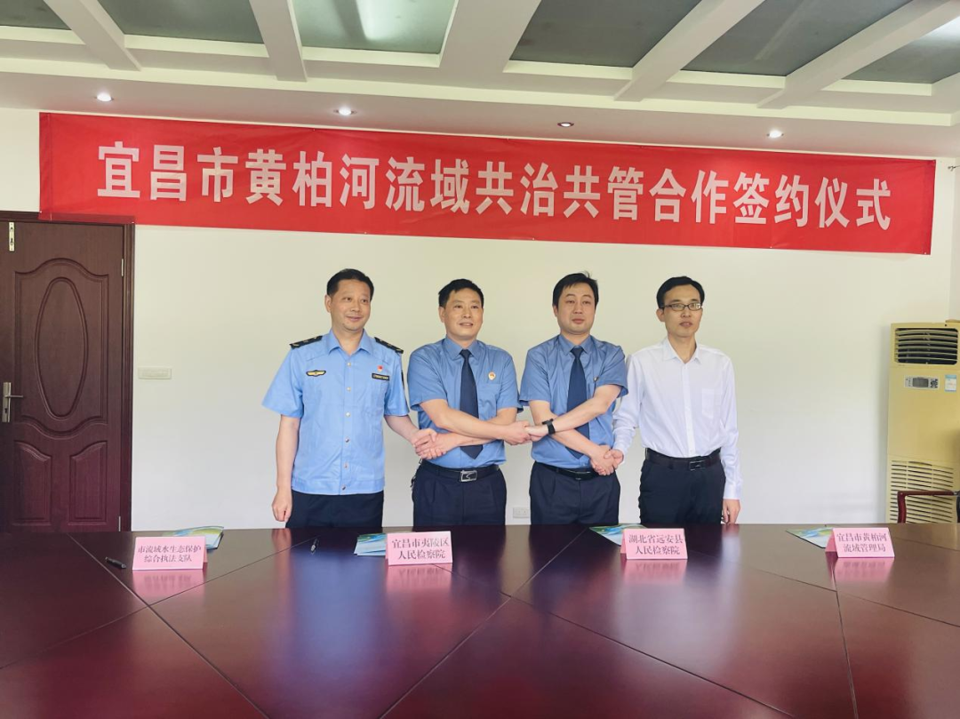 7月5日, 宜昌市流域水生态保护综合执法支队联合湖北省远安县人民检察院、宜昌市夷陵区人民检察院和宜昌市黄柏河流域管理局等部门,在尚家河水库管理处签订《宜昌市黄柏河流域综合治理合作协议》,以期进一步提升黄柏河流域综合治理能力,强化流域生态环境资源司法保护水平。
