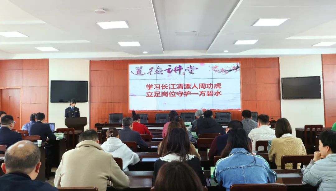 为致敬时代楷模、赓续道德力量,引导青年干部立足岗位干事创业,3月20日下午,宜昌市生态环境局组织开展以“学习长江清漂人周功虎 立足岗位守护一方碧水”为主题的道德讲堂暨青年大讲堂活动。
