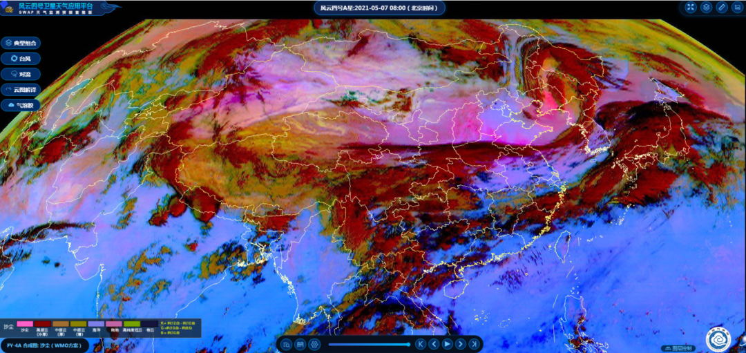 7日8时卫星云图显示,沙尘影响范围覆盖到华北大部、东北及华东局部。