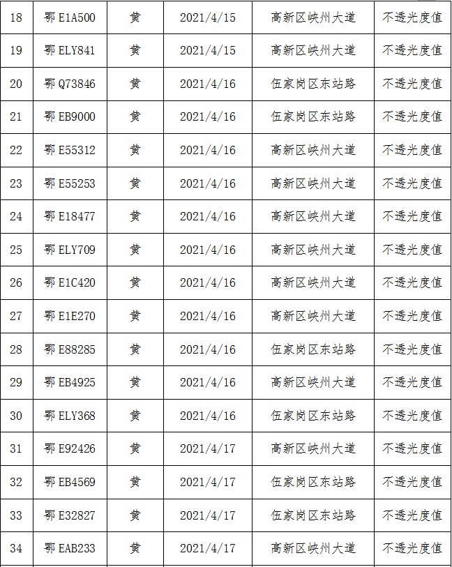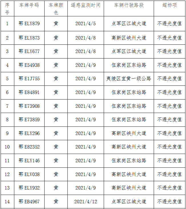 宜昌市机动车排气污染管理中心 宜昌市公安局交通警察支队 关于发布高排放及排放不合格车辆名单的公告(四月)